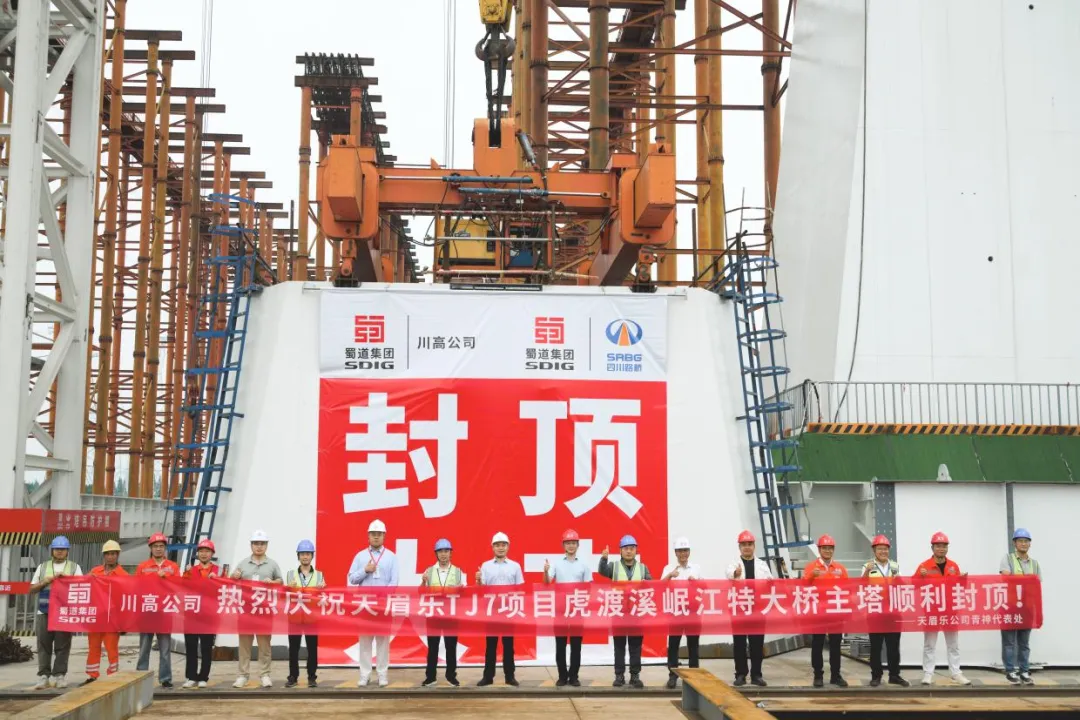 10月6日,由交建集團參建的天府新區(qū)經(jīng)眉山至樂山高速公路(以下簡稱“天眉樂高速”)控制性工程——虎渡溪岷江特大橋主塔順利封頂,即將進入梁板安裝工作階段?;⒍上航卮髽蚴撬拇ㄊ∈鬃捎娩摎ぁ炷两M合索塔結(jié)構(gòu)的大跨斜拉橋,此次主塔封頂標志著項目建設(shè)取得階段性重大進展,為我國山區(qū)高速橋梁向工業(yè)化智能建造技術(shù)轉(zhuǎn)型升級做出有力探索。